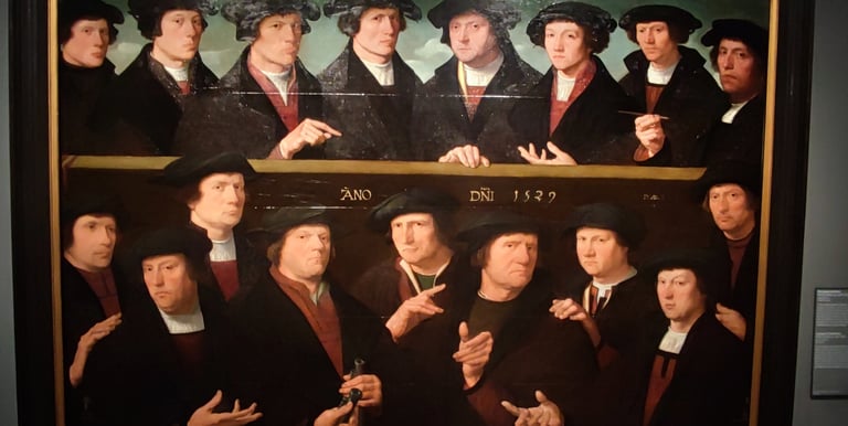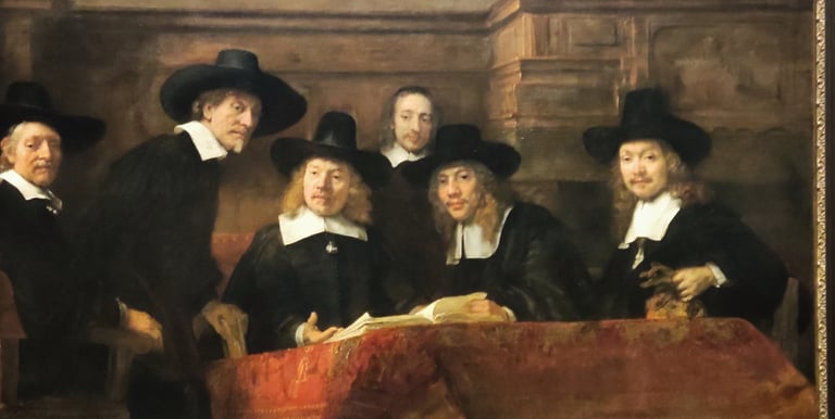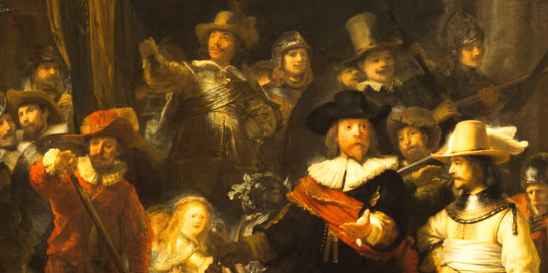 All of that was done through creativity, capitalistic optimism, and the tenacity to dare, to go far, far away, and visually it feels like those Dutch group portraits, from the early orderly guild pictures of 1529 to Rembrandt’s dynamic Night Watch a century later.